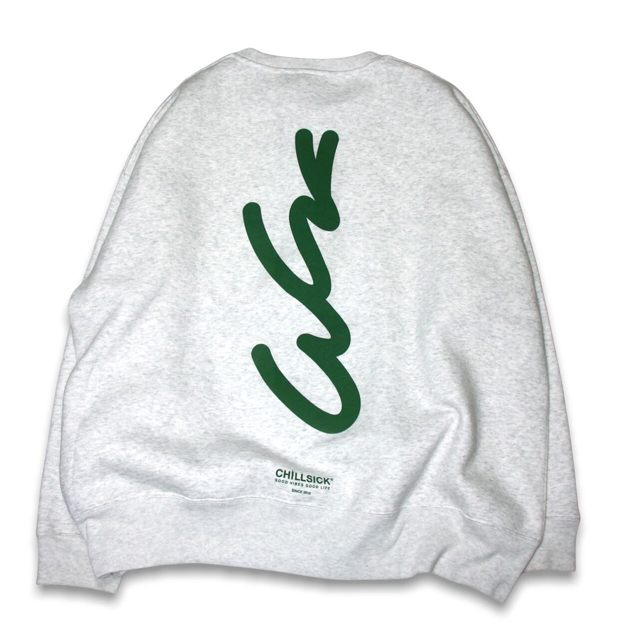 CLSKのグラフィックを大胆にプリントしたビックシルエットのクルーネックスウェット。
