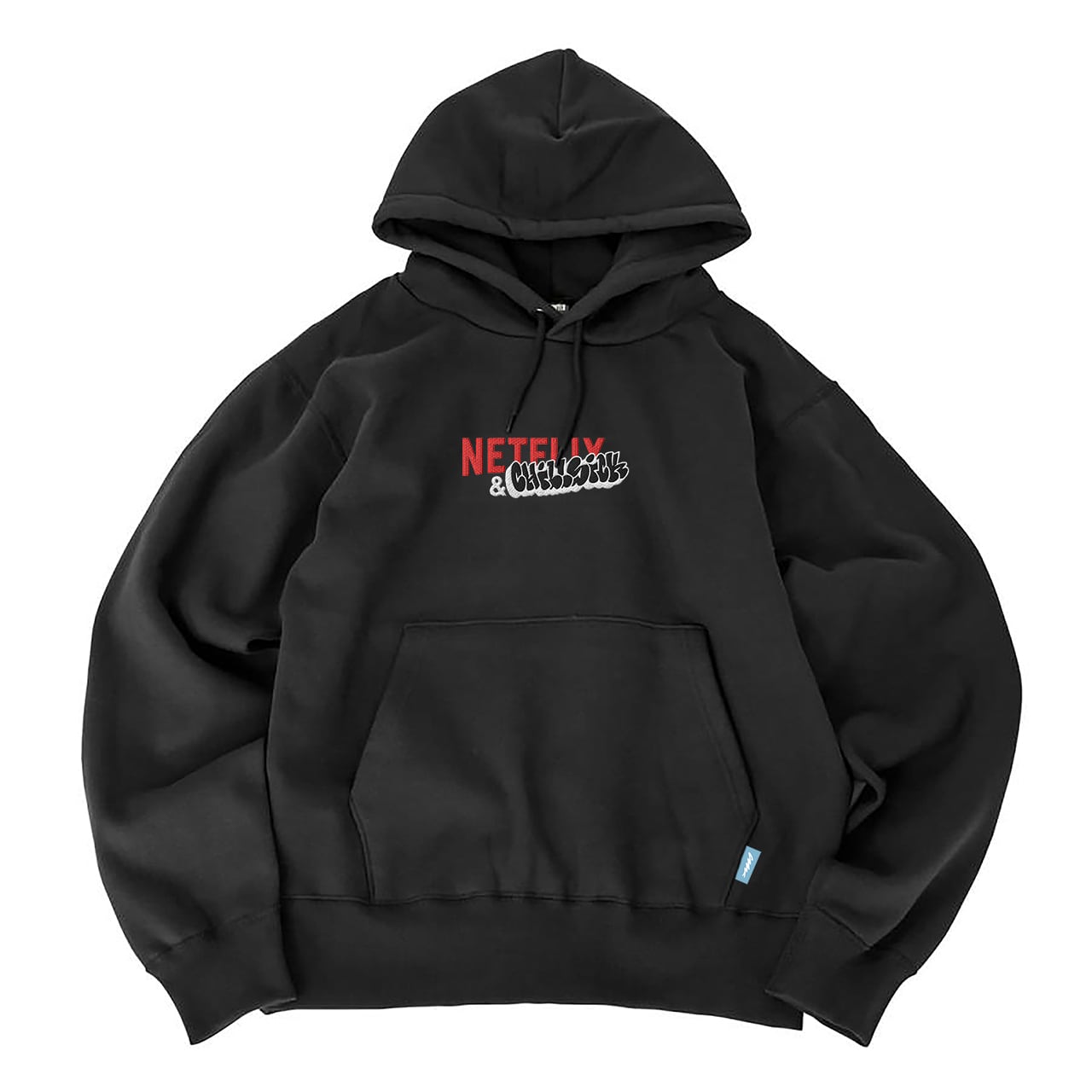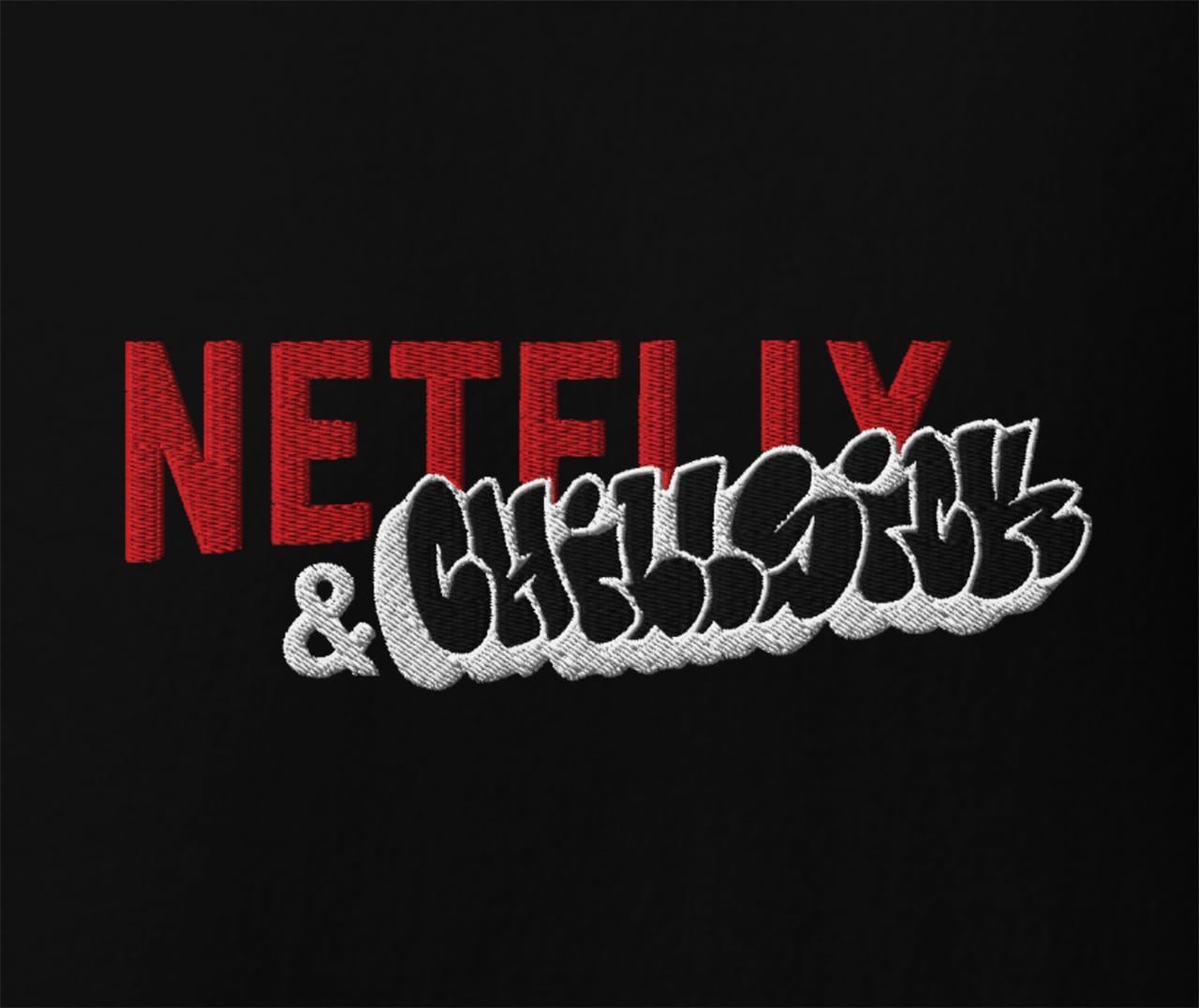 フロントにNETFLIX & CHILLSICKのグラフィックを刺繍加工でオン。
