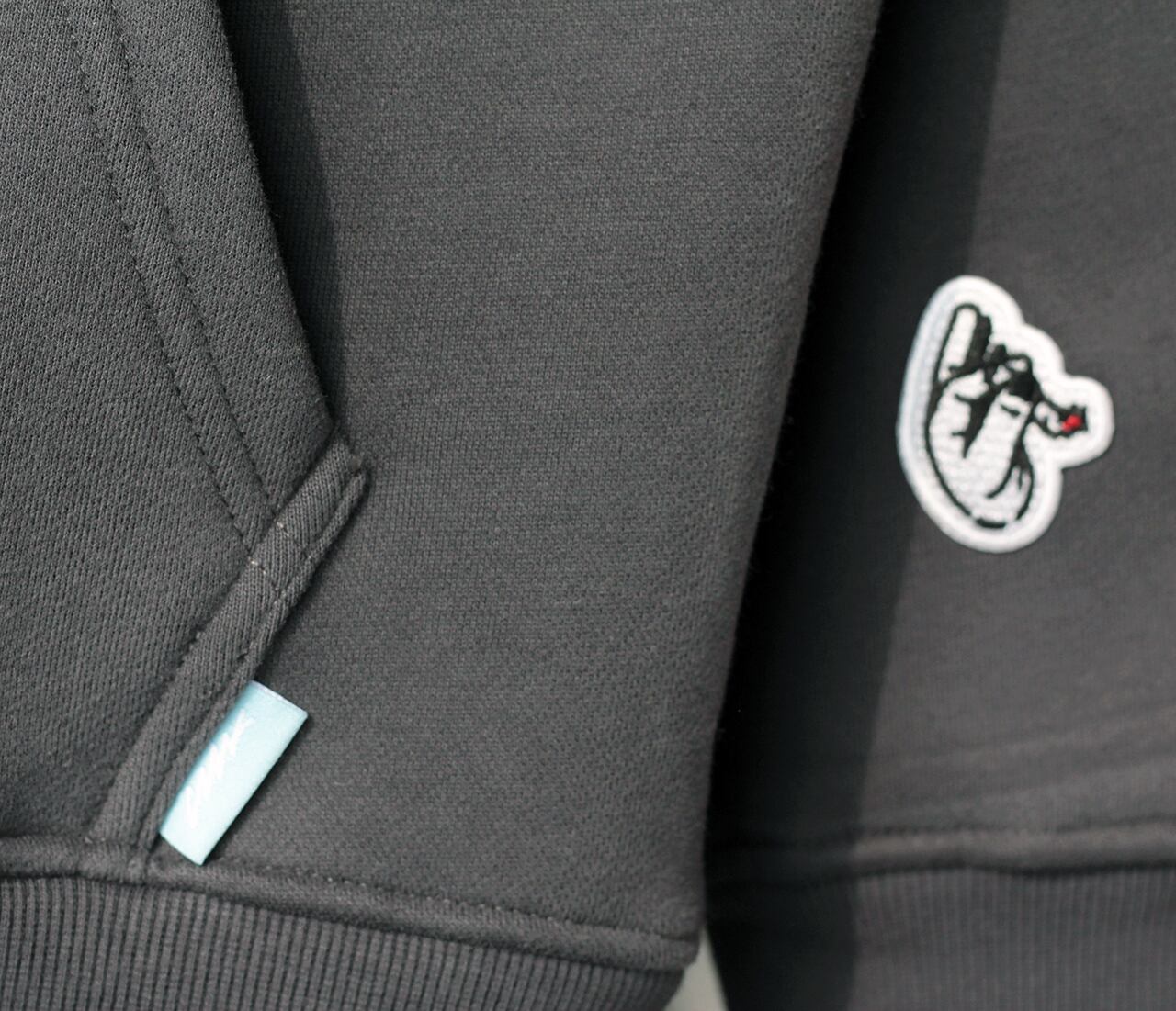 シルクスクリーンプリントはデザイナー自ら1枚ずつ手刷りで印刷、タグの縫製も全てデザイナー自身が縫製しています。