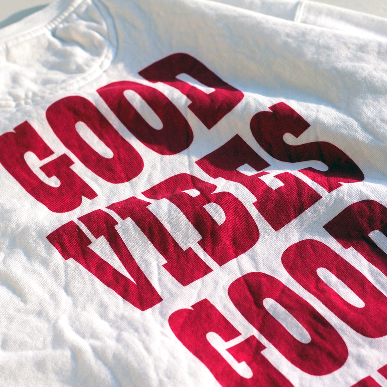 後染め加工されたボディーに染み込みプリント(※ペッパーはラバープリント)で古着のようなビンテージライクな風合いを再現しています。